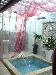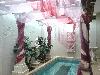 泳池畔是粉紅和紫色的布幔~~好浪漫