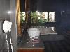 房間內有沙潑和桌子。房間和浴室之間有門可以關著。