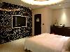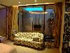 上了二樓一進門, 首先映入眼簾的是一貴妃椅,椅子的左邊即是浴室入口, 浴室入口左邊則是床頭櫃和床了. 貴妃椅後面的窗帘拉開即可見玻璃窗後的按摩浴缸區. 進房後的左後方是MINI BAR, 飲料,水,咖啡包,茶包,點心皆有,但沒泡麵. 臥室的電視是青雲的,有VOD系統,VOD遙控器很好用,不過比較可惜沒有快轉鍵; VOD影片也很不錯, 因最近才剛到戲院看過變型金鋼2,所以就選了第一集來復習一下, 房內的電視和喇叭的影音效果挺不錯的!