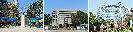 東海大學路思義教堂是東海大學的代表景觀,造型獨幟一格為貝聿銘之經典傑作,外觀恰似航向天堂的飛帆。校舍景觀規劃亦得力於貝聿銘、陳其寬及張肇康等知名建築師,依地勢而建的學院系所,多為合院格局,迴廊轉折,花樹輝映,頗有典雅韻味。