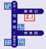 南下:下嘉義交流道往阿里山方向,沿北港路直走3.5公里處,到世賢路左轉,沿世賢路一段走3.5公里處,到忠孝路右轉500公尺即可到達。 |
