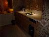 整個房間分三大區: 第一區是一進門的玄關, 飲料點心區, 以及衣櫃和這間的賣點: 兩匹會隨燈光音樂起舞的木馬; 第二區是繼續往內是浪漫的床和電視KTV區; 第三區最裡面則是浴室區, 包含按摩浴缸, 蒸氣室, 以及附有雜誌的廁所哩(大驚喜)! 而且蒸氣室和廁所是有門的哦(有些人不習慣開放式設計)!