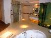 房間的風格是自然素雅, 有戶外造景, 浴室區比臥室區還大, 兩區中間用旋轉電視間隔. 蒸氣室, 按摩浴缸功能皆正常, 水量很大. 按摩倚有點小問題, 但維修人員一下就修好了, 且 C/O 時有贈送一精美小禮物做補償.