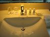 再往裡走便是浴室 , 進入浴室後 , 石材按摩浴缸很大 ,它的底部有10個按摩汽孔 , 振動的氣體從底部噴出 , 按摩的效果很好.很舒服~
