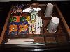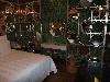 進門後第一個感覺是.......怎麼好小間,不過仔細每個部份看一遍就會發現其實差不多,牆壁有綠色的配色加上黃色的造景就不會太單調,客廳與床之間的活動式分隔牆很特別,用很多格子中間一個鑲鏡子一個是裸空在視覺上有有不同的落差感,桌上的點餐簿換成類似桌曆的方式擺設,燈飾像燭光一樣很特別,吧檯後面有打燈與一個插電香,點心櫃,飲料等和之前差不多,床的旁邊只有看到一個無線遙控器,之前房間都有是有無線各一個,梳妝台上面還有房間設備的操作手冊,教學設定算是滿清楚的,另外這間不知道是因為靠近路邊還是什麼情況,外面剛好有警車之類的鈴聲響了一陣子,聽得還滿清楚的= ="