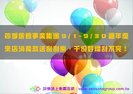 9月四季旅館週年慶,刮刮樂想好康,有機會得到IPAD3 DIOR粉餅喔(此優惠活動已經過期)