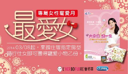 天韻最愛女-提醒男性多關懷身邊女伴,也叮嚀女性朋友們體貼自己! 03月08日起推出「最愛女(侶)」寵愛優惠,活動期間貴賓來館住宿;除附贈精緻自助式(套餐式)早餐外,更特別禮遇升級獨享體貼好禮,來館度假,關懷體貼又有好面子!