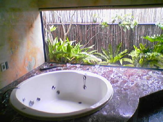 浴室非常大,室外的造景也很漂亮
