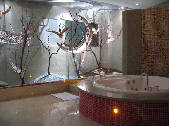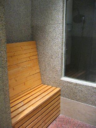 浴室區就是臥室跟客廳加起來的大.除了有按摩浴缸外,還有隔一間烤箱室喔,