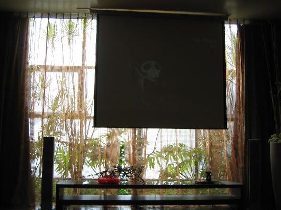 好大的投影電視跟後面的樹跟盆栽是真的喔~