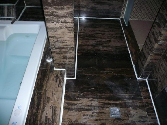 4)浴缸的水龍頭會漏水,流到整個淋浴間外的地面都是水,我還差點滑倒!