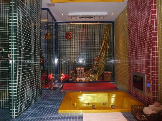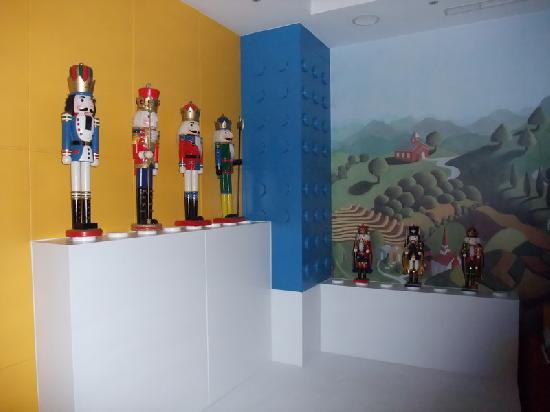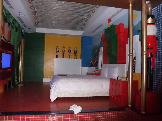 "胡桃鉗", 非常漂亮的一房間, 房裡有許多可愛的樂高木偶, 按摩浴缸是金黃色的, 蒸氣室裡還有花灑及四根水注, 另有維琪浴. 還有從浴室的窗戶看出去就可以看到美麗華的摩天輪, 夜晚的摩天輪有七彩變化, 真是漂亮!