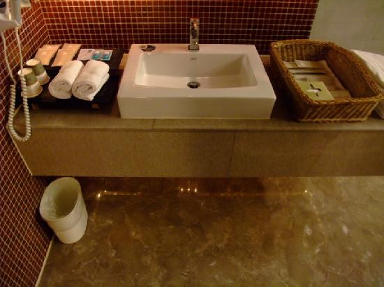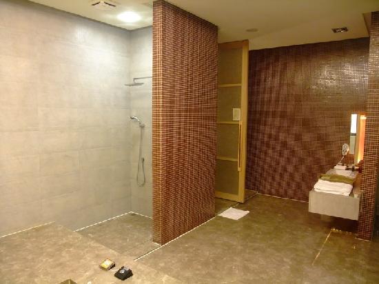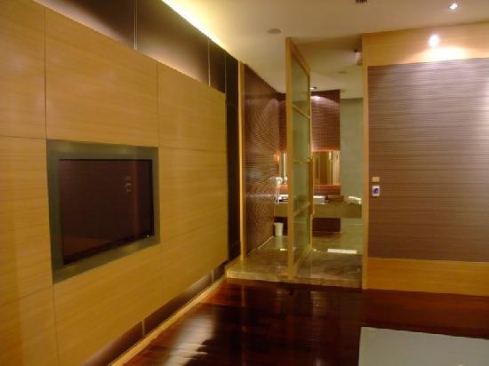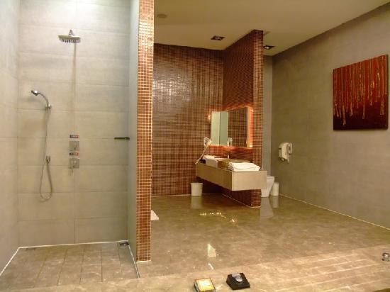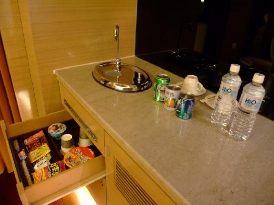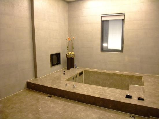 房間在2F, 也是要走樓梯上去, 一進房就覺得有點老舊, 還好按摩椅還是有牌的(高島牌), MINI BAR 的東西還不錯 (有泡麵, 還有一罐啤酒); 浴室的按摩浴缸很大,也有附泡澡精油. 不過,整個房間就是大而已, 沒什麼設計感.