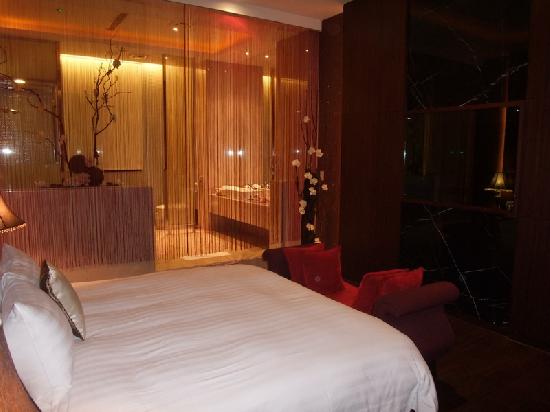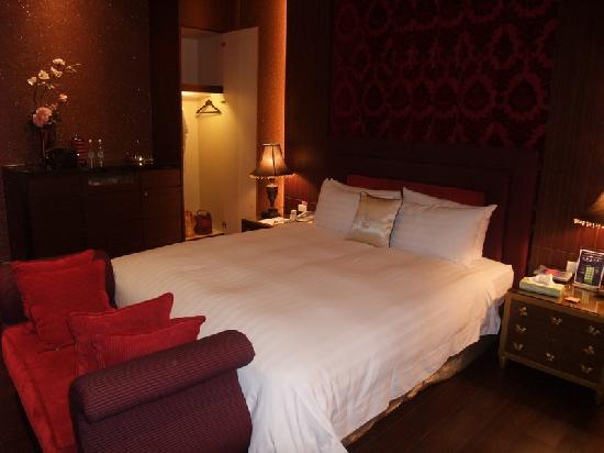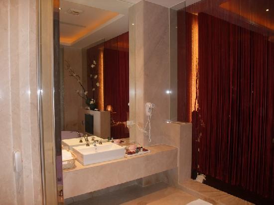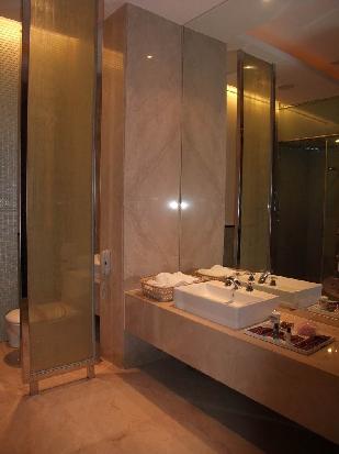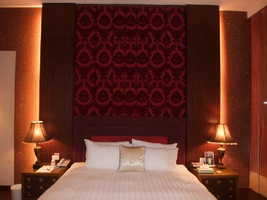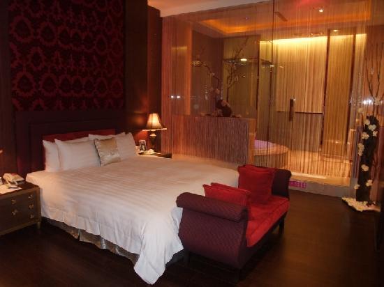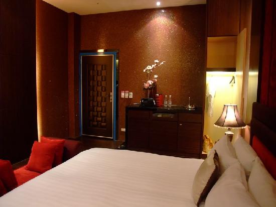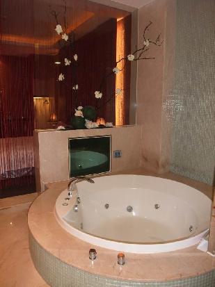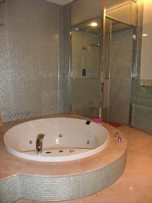 這是另一間: 211房, 價錢和 208房一樣, 格局也一樣, 不同的是淋浴蒸氣室和馬桶位置對掉. 這間因按摩浴缸是圓形的,且沒有分兩個凹度, 因此沒有 208房浴缸寬度不足的缺點. 不過,208房浴室區的壁磚比較漂亮. 但 211房的臥室區的裝潢我覺得比較美. 整體而言, 個人認為 211房優於208房. 但老媽反應似乎棉被有點煙味, 請注意一下 ...