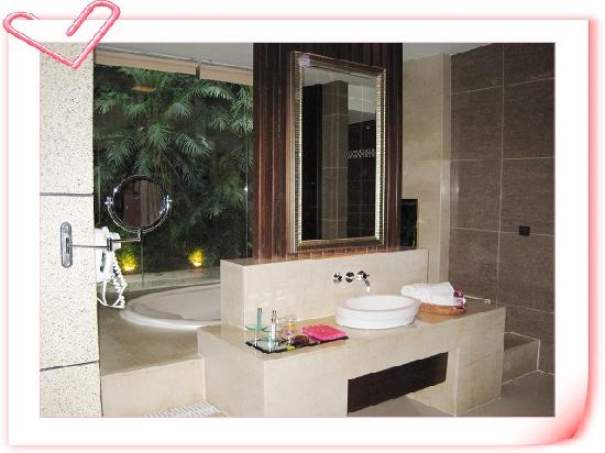 洗手台(旁邊牆壁還有個伸縮鏡)~後方則是浴缸