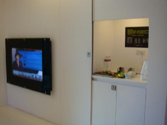 由桌椅區向左前方看--電視(HERAN廠牌)&衣櫥區&點心櫃&小冰箱區