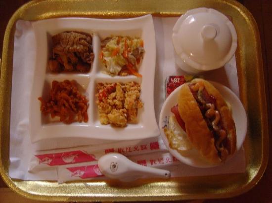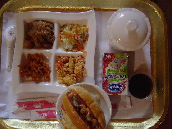 中式跟西式早餐(下面白碗裝的是稀飯)