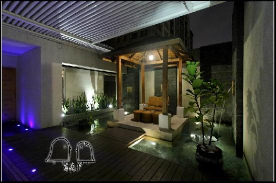 P: 我很喜歡這種輕鬆悠閒又帶點淡淡奢華的感覺,台中某些MOTEL頂級房的峇里島風情常常都有點過度奢華了。有時候會有為奢華而奢華的感覺,而沒有實際效果(這樣講不知道有沒有人會懂說......)。話說泳池邊那個水痕是我搞的不好意思>"<