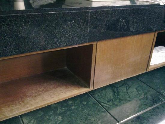 洗手台下面的木材脫漆了.看起來很不搭.扣了很多分,浴缸也有青苔(有圖為證)