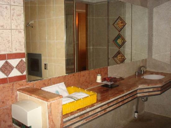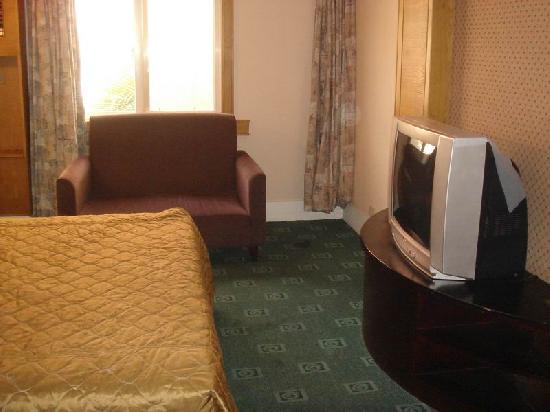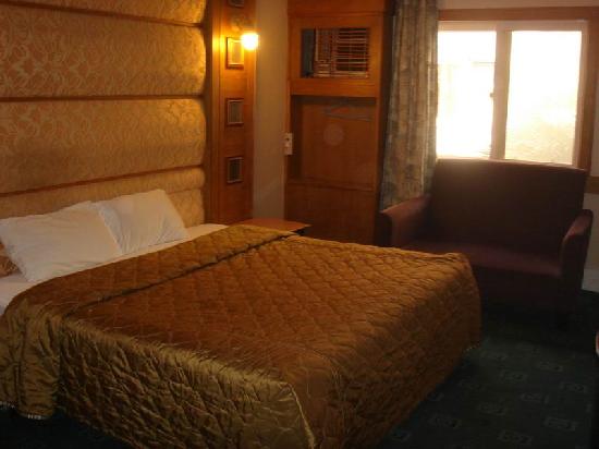 裡面的空氣不好。 而且冷氣也不冷。 冰箱的門是壞的。 房間內有地毯。 空間不大。
