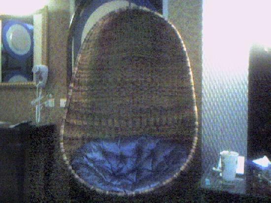 在說說他的"主題"..不過就在在房間放個空中坐椅..在畫個跟皇宮一樣的圖案 就說是辛巴達= =?..他的座椅也沒說可以承受幾公斤..就靠一個看起來很恐怖的小鐵鍊支撐..受傷了他會賠嗎@@"?..